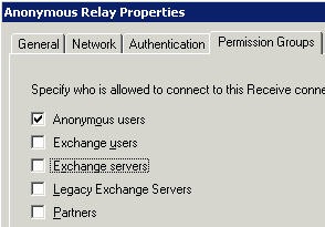 However, to allow anonymous relay on this Receive connector, you have to also grant the following permission to the Anonymous Logon security principal on the Receive connector: