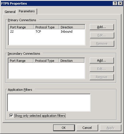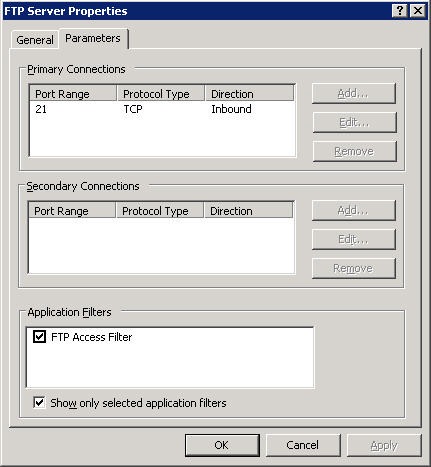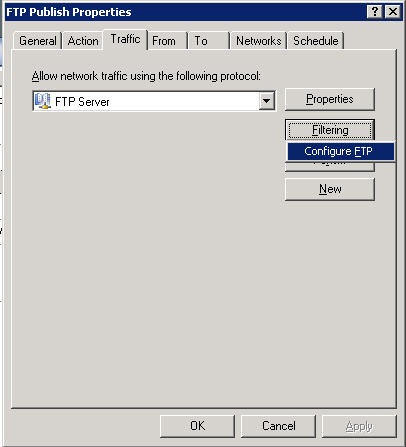 Once you install EFT Server, you need to configure a few things using the Wizard. You can use EFT Server as SFTP & FTP, ports 22 & 21 respectively. In ISA 2006, there are a couple of things to keep in mind, The FTP Access Filter which is enabled by default won’t work with SFTP because the connection is encrypted and ISA won’t be able to access it. The other thing is you need to do is edit the filter of the FTP Server protocol and disable Read Only.