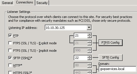 Click on the FTP/S Config button