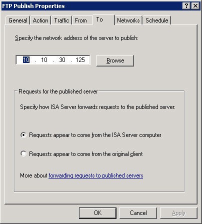 These 3 rules above are all mostly defaults, except you need to change this setting below on ALL 3 rules, requests appear to come from the ISA Server computer.