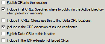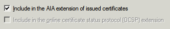 4. Click on Add -> on the location, put: http://wwwca/CertEnroll/<ServerDNSName>_<CaName><CertificateName>.crt (where wwwca is the netbios name of the Sub CA). Tick the following boxes.