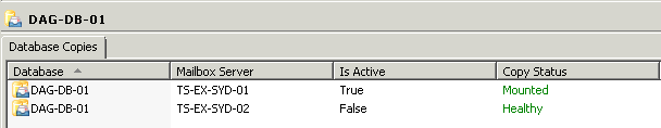 14. That’s it, your DAG is setup. On the Database Management tab you will see the two members of the DAG.