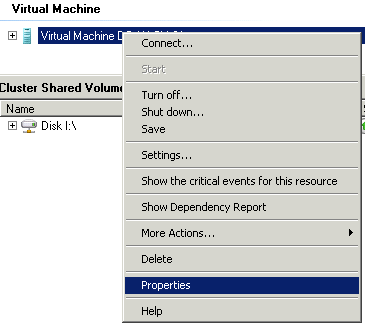 You can also manually change which network Virtual Machines use for Live Migration, On one of the Hyper-V hosts, open Server Manager > Expand Failover Cluster Manager > Expand the Cluster > Expand Services and applications > In the console tree (on the left), select the clustered virtual machine for which you want to configure the network for live migration > Right-click the virtual machine resource displayed in the center pane (not on the left), and then click Properties.