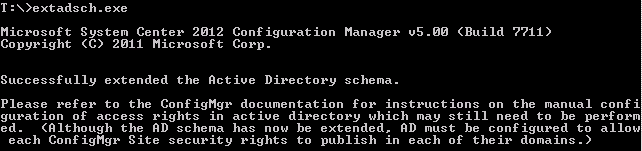 1. Simply map a drive to the \SMSSETUP\BIN\X64 folder of the installation DVD, and run extadsch.exe from the command prompt. The screenshot below shows I mapped the drive as T:\ drive.