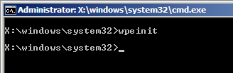 • Once WinPE has loaded, you will see just a command prompt window like this.