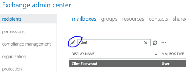 - Select Recipients > Mailboxes and find the mailbox that you are granting access to and click Properties
