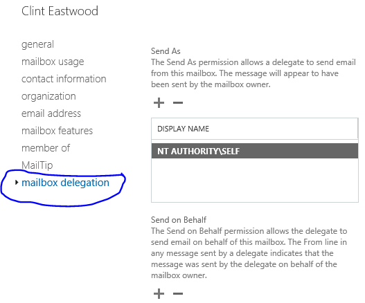 - Select Mailbox Delegation