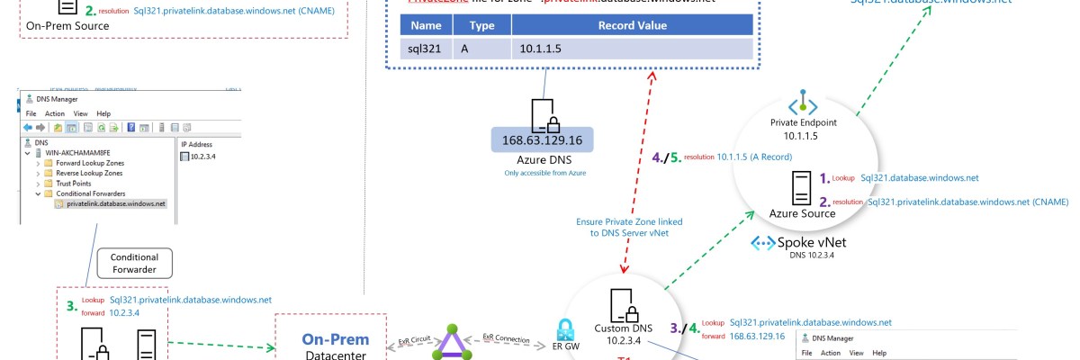 Azure Private Link is a private connection to Azure PaaS services. However to really understand private link, you need to understand what is happening under the covers – with DNS. Before you enable Private Link for a PaaS service e.g. Azure SQL, if you had an Azure PaaS service URL e.g. Sql321.database.windows.net (a global zone), the following would be the DNS resolution that would occur: You had a virtual machine that made a request to Sql321.database.windows.net This DNS request resolved to a DNS CNAME record and was forwarded by using a redirect (CNAME) to another regional DNS zone of westeurope1-a.control.database.windows.net…